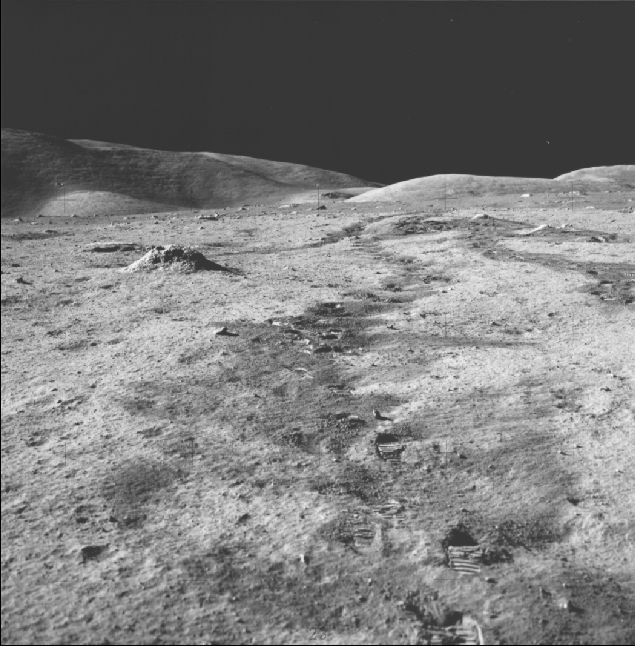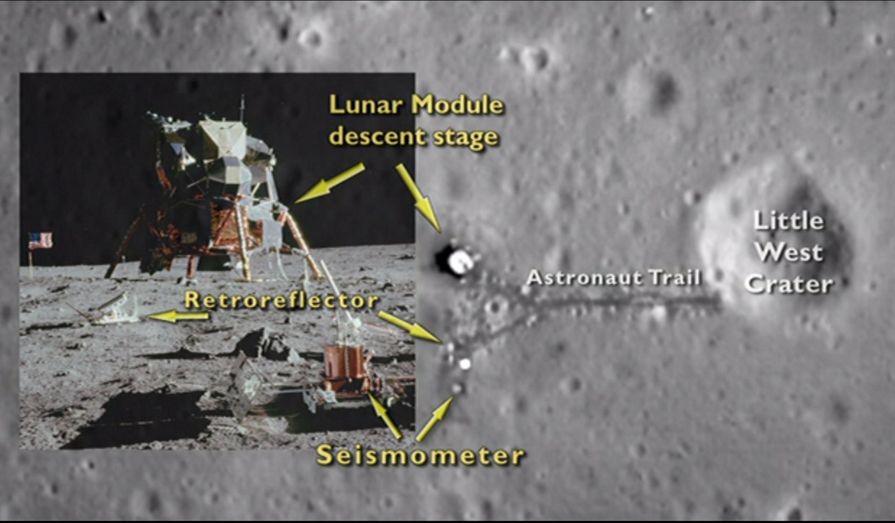 Difficili da leggere, ma se allargaste l’immagine ci sarebbero le tracce di Apollo 11, 12, 14, 15, 16 e 17. O almeno la Nasa ce le vede. Non c’è Apollo 13 ma quello, come tutti sappiamo, è proprio un film con Tom Hanks e non si sono nemmeno presi la briga di lanciarlo dicono i Lunadubbiosi. Poi ecco le tracce sul suolo lunare e una spiega del tutto.