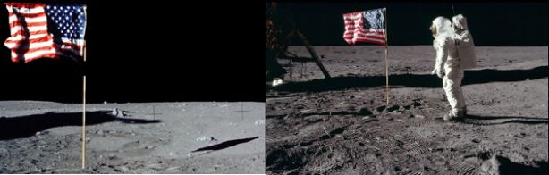 Ai Terrapiattisti proprio negli USA si aggiunsero subito i Lunadubbiosi. Lo sbarco non c’era stato! Era tutta una ripresa cinematografica …. La prova? Quella bandiera americana che garriva a un vento che nella luna non c’è.
